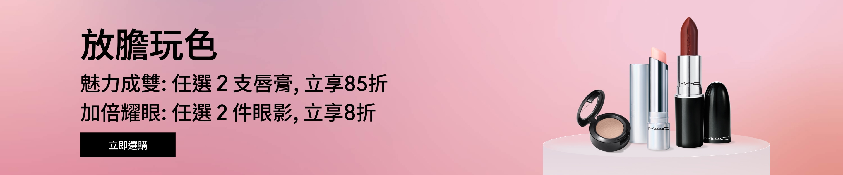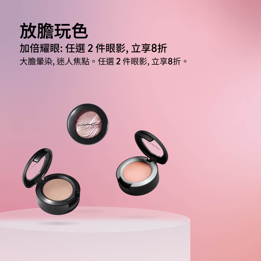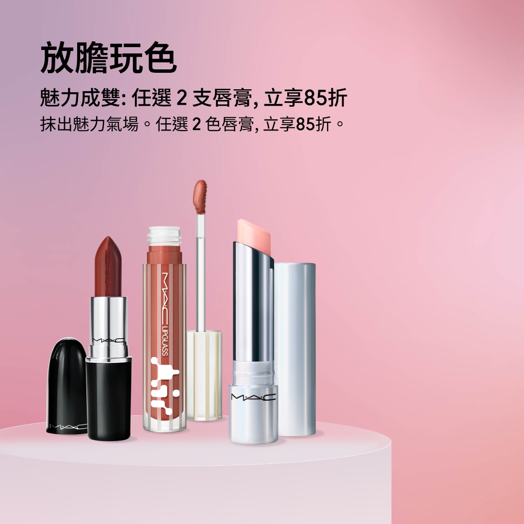 - *「買2享8折」優惠活動的權益,僅適用於以下指定商品:超持妝霧絲絨氣墊粉餅SPF 50/PA+++、超水感持色水唇膏、MACXIMAL極自我緞光唇膏