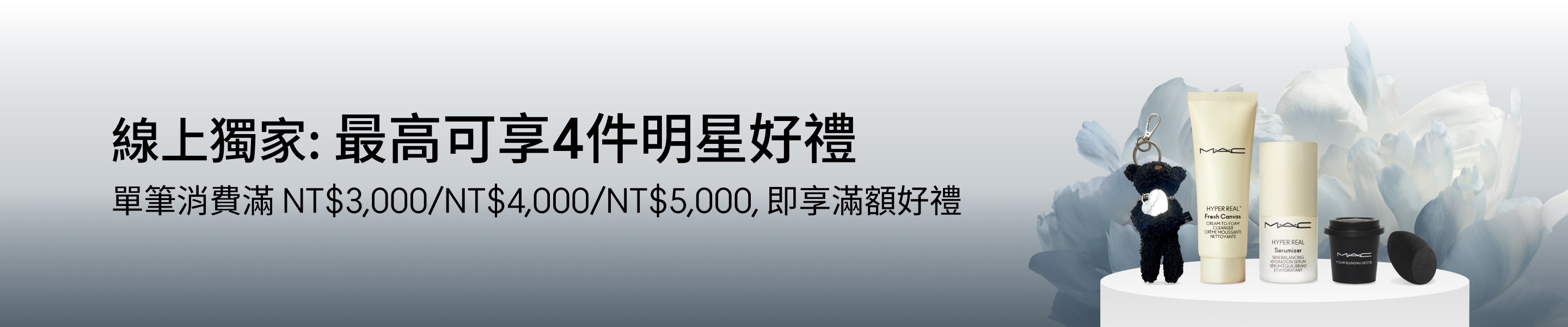 尋找你的完美禮物 MACXIMAL SLEEK SATIN LIPSTICK 814 MYTH 光裸嫩 Studio Fix Cushion Compact SPF 50 / PA+++ Prefill N18 熱賣色選(中性調的自然膚色) GLOW PLAY LIGHTFUL C3 TONE-UP PRIMER SPF 50+/PA+++ 薰衣草 光澤 X 柔霧 X 立體 自由定義你的頰彩風格 SKINFINISH COLOURSTRUCK BLUSH 柔霧絲絨 超透亮冰晶氣墊唇油,立即探索絕美色選 汲取專業彩妝師搭配靈感,以全新超透亮冰晶氣墊唇油打造你專屬的魅力唇妝。 探索全新唇妝系列 彩妝師專業建議找到最適合你需求的遮瑕 修飾泛紅+瑕疵冷調遮瑕色,校正泛紅肌膚或修飾暖調瑕疵。 尋找你的命定色 遮蓋暗沉+黑眼圈暖調遮瑕色,修飾偏冷調的色素沉澱、暗斑與眼下暗沉。 尋找你的命定色 修容+提亮選擇比粉底深一至兩個色階的遮瑕色進行修容,再以淺一至兩個色階提亮輪廓。 尋找你的命定色 打造完美底妝瀏覽超持妝新產品 Studio Fix 24HR Colour Corrector Mint 薄荷色 Studio Fix 36HR Smooth Angles Concealer NC15 Multi Sculpt Matte Liquid Colour Brulé 奶霧米超值禮品超奇肌組合最高7折優惠 超奇肌清潔雙星原價:NT$ 4,350 (優惠價 $3,001) 立即選購 超奇肌清潔修護組原價:NT$ 4,600 (優惠價 $3,220) 立即選購 探索最新系列 M·A·C METAMORPHOSIS 系列新品限量推出的彩妝系列,結合花卉靈感色調與前衛炫彩光澤科技,打造層層變幻的花漾妝容。 立即選購 超持妝3D立體修正液輕盈滑順,無痕妝感只須用手指或彩妝刷輕輕一抹,即可打造深邃輪廓 立即選購 POWDER KISS 系列新品全新 Hazy Matte Lipstick 輕親雲霧保濕唇膏與 Lip+Cheek Mousse 唇頰兩用慕斯,從雙唇到雙頰,打造完美朦霧柔焦妝感。 立即選購 *活動條款與注意事項*包含短效期商品(剩餘效期12個月),請確認需求後再購買* 活動期間與適用商品:優惠僅限指定商品,部分商品或新品/節日系列不適用。* 贈品說明:贈品數量有限,送完為止;贈品或試用品可能會不預告變更。* 取消/退款規則:整筆訂單取消或退款需退回所有贈品;部分取消或退款若金額低於門檻,也需退回對應贈品。* 折扣限制:促銷碼不可與其他優惠或活動併用。* 使用限制:每位顧客每訂單僅可使用一次,已完成或未完成訂單不適用。* 活動變更權:MAC 保留因未經授權使用、訂單異常、系統錯誤或其他不可預期情況修改、取消或終止活動的權利。
