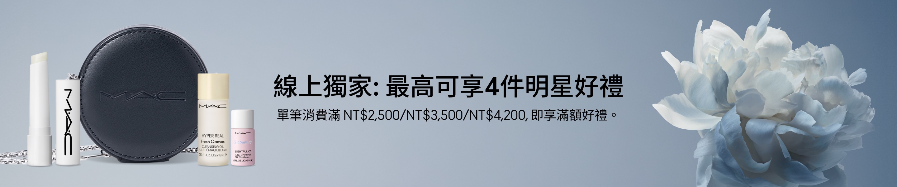 母親節限定優惠買任兩件臉部產品,立享淨妝油 100ml 4.8/5 ( 16 ) Studio Fix Skin Balancing Complex Longwear Soft Matte Foundation NC15 熱賣色 4.6/5 ( 8 ) Studio Radiance Serum-Powered™ Foundation NC15 熱賣色選 4/5 ( 1 ) New Studio Fix Powder Plus Foundation NC10 彩妝師專業建議找到最適合你需求的遮瑕 修飾泛紅+瑕疵冷調遮瑕色,校正泛紅肌膚或修飾暖調瑕疵。 尋找你的命定色 遮蓋暗沉+黑眼圈暖調遮瑕色,修飾偏冷調的色素沉澱、暗斑與眼下暗沉。 尋找你的命定色 修容+提亮選擇比粉底深一至兩個色階的遮瑕色進行修容,再以淺一至兩個色階提亮輪廓。 尋找你的命定色 打造Ella的霧感柔焦妝容 NEW NEW 將 ::count:: 件商品加入購物袋,總計 $::price:: 超值禮品超奇肌組合最高7折優惠 超奇肌清潔雙星原價:NT$ 4,350 (優惠價 $3,001) 立即選購 超奇肌清潔修護組原價:NT$ 4,600 (優惠價 $3,220) 立即選購 探索最新系列 M·A·C METAMORPHOSIS 系列新品限量推出的彩妝系列,結合花卉靈感色調與前衛炫彩光澤科技,打造層層變幻的花漾妝容。 立即選購 M·A·C CLEANSERS 潔膚新品溫和高效的潔顏與卸妝產品,適合所有膚質,讓清潔成為保養的第一步。 立即選購 POWDER KISS 系列新品全新 Hazy Matte Lipstick 輕親雲霧保濕唇膏與 Lip+Cheek Mousse 唇頰兩用慕斯,從雙唇到雙頰,打造完美朦霧柔焦妝感。 立即選購 *活動條款與注意事項*包含短效期商品(剩餘效期12個月),請確認需求後再購買* 活動期間與適用商品:優惠僅限指定商品,部分商品或新品/節日系列不適用。* 贈品說明:贈品數量有限,送完為止;贈品或試用品可能會不預告變更。* 取消/退款規則:整筆訂單取消或退款需退回所有贈品;部分取消或退款若金額低於門檻,也需退回對應贈品。* 折扣限制:促銷碼不可與其他優惠或活動併用。* 使用限制:每位顧客每訂單僅可使用一次,已完成或未完成訂單不適用。* 活動變更權:MAC 保留因未經授權使用、訂單異常、系統錯誤或其他不可預期情況修改、取消或終止活動的權利。