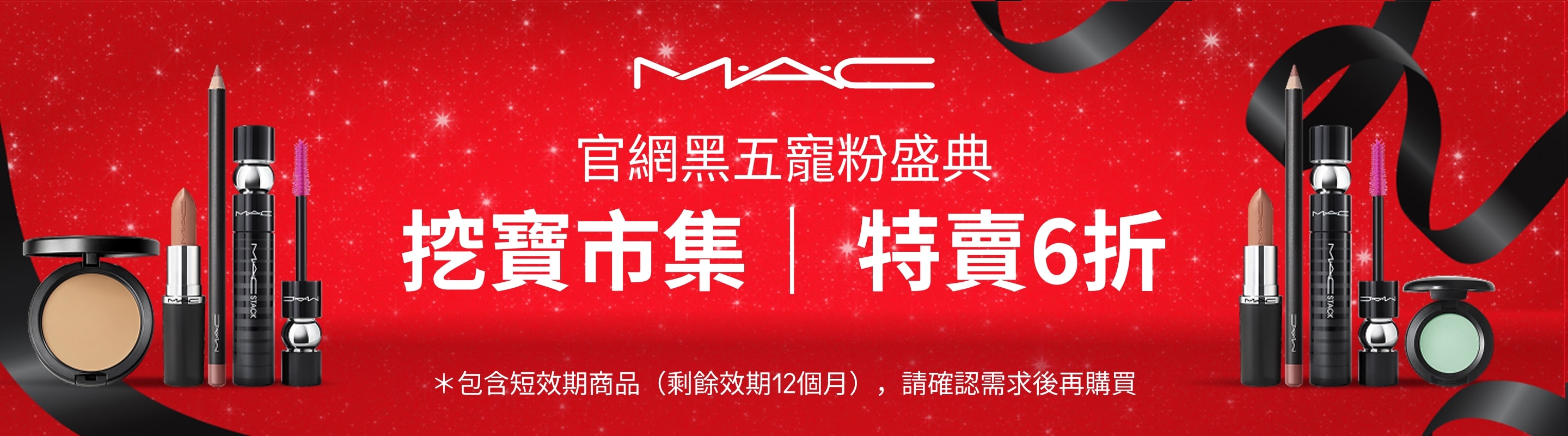 黑色星期五超級特賣 即將結束! Sun Nov 30 2025 23:59:59 很抱歉,活動已結束! 0 DAYS 0 HRS 0 MINS 0 SECS 唇部底妝人氣王|任選二件8折 5/5 ( 3 ) MACXIMAL SLEEK SATIN LIPSTICK 814 MYTH 光裸嫩 M·A·CXIMAL SILKY MATTE LIPSTICK 669 WARM TEDDY 暖萌泰迪 4.9/5 ( 8 ) Studio Fix Pro Set + Blur Weightless Loose Powder Lavender 絕絕紫 Chromacrayon Eye Shadow Stick High Taupes M·A·C Pro Brow Definer 1MM Tip Brow Pencil ONYX 6 折優惠! Eye Brows Styler 塑造12小時持久的極致立體眉形 Lingering(熱賣色) 加購底妝神隊友,輕鬆湊單享價值好禮 GLOW PLAY LIGHTFUL C3 TONE-UP PRIMER SPF 50+/PA+++ 薰衣草 6 折優惠! Hyper Real Serumizer™ Eye Prep + Prime Highlighter 提高光澤, 清透遮蓋, 持久 Bright Forecast 5/5 ( 11 ) Prep + Prime Lip 保濕, 唇紋隱形, 嫩唇配方,唇部妝效升級! Skinfinish Metallic Cream Blush Priceless Purple 選購最熱門的節日好禮*不適用全館9折優惠及迎新禮遇折扣 全新.節慶限定版 未來樂園系列-超透亮潤唇組 全新.節慶限定版 未來樂園系列-六色眼影盤 全新.節慶限定版 未來樂園系列-超漾光唇頰組 Pink 新會員首次購物尊享全單85折 |優惠碼: WEL15 MY M·A·C 帳戶 新客LINE會員下單禮 超漾光高防曬妝前乳 5ML 原價 $300 綁定官方LINE帳號拿優惠碼 > *每個帳戶限使用一次 立即購買 舊客回購禮 超漾光高防曬妝 前乳 5ml 原價 $300 登入輸入 MACPRO *每個帳戶限使用一次 立即購買] 全站免運費不限金額消費即可享受免費配送服務 了解更多*活動條款與注意事項* 活動期間與適用商品:優惠僅限指定商品,部分商品或新品/節日系列不適用。* 贈品說明:贈品數量有限,送完為止;贈品或試用品可能會不預告變更。* 取消/退款規則:整筆訂單取消或退款需退回所有贈品;部分取消或退款若金額低於門檻,也需退回對應贈品。* 折扣限制:促銷碼不可與其他優惠或活動併用。* 使用限制:每位顧客每訂單僅可使用一次,已完成或未完成訂單不適用。* 活動變更權:MAC 保留因未經授權使用、訂單異常、系統錯誤或其他不可預期情況修改、取消或終止活動的權利。*「買2享8折」優惠活動的權益,僅適用於以下指定商品:超持妝霧絲絨氣墊粉餅SPF 50/PA+++、超水感持色水唇膏、MACXIMAL極自我緞光唇膏 、MACXIMAL極自我柔霧唇膏、超持妝輕透濾鏡蜜粉、口袋雙色濾鏡蜜粉餅#紫白餅 、絲柔粉霧唇膏、超持妝奢緞粉底精華 | 聚光粉底、超持妝濾鏡粉底液SPF25/PA++ 、超持妝全能氣墊粉餅SPF 50/PA++++、絲柔粉霧奢緞唇膏、絲柔粉霧唇釉、超鎖吻霧感唇膏。此優惠不可與迎新禮遇、挖寶市集、全站9折等折扣類優惠活動同時使用。