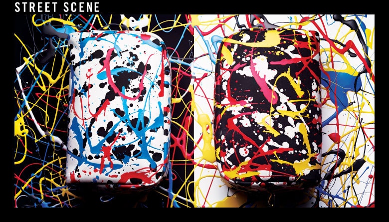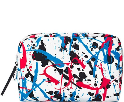 Our classic nylon makeup bag goes splatter-painted this year in two new unique prints. Colour play shouldn’t stop with makeup!