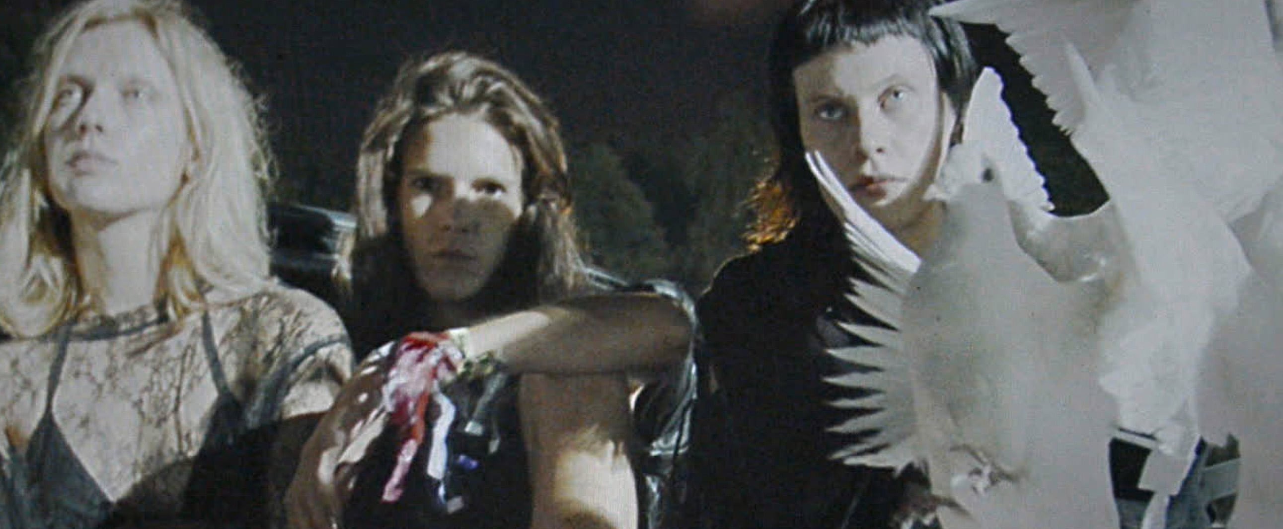 An: We wanted to work with a naked face, to show a raw, minimal beauty. We used white doves in the beginning and end of the movie and we had a print on silk with doves. When we read these words in Tom Waits’s song, it gave us goose bumps, as it all made perfect sense: “And she cut two holes in the back of her dress / and she had these scapular wings / That were covered with feathers and electrical tape…” We didn’t want to put music on the film because we didn’t want the mood of a video clip. The content is poetic, raucous, humorous-perfect ingredients!