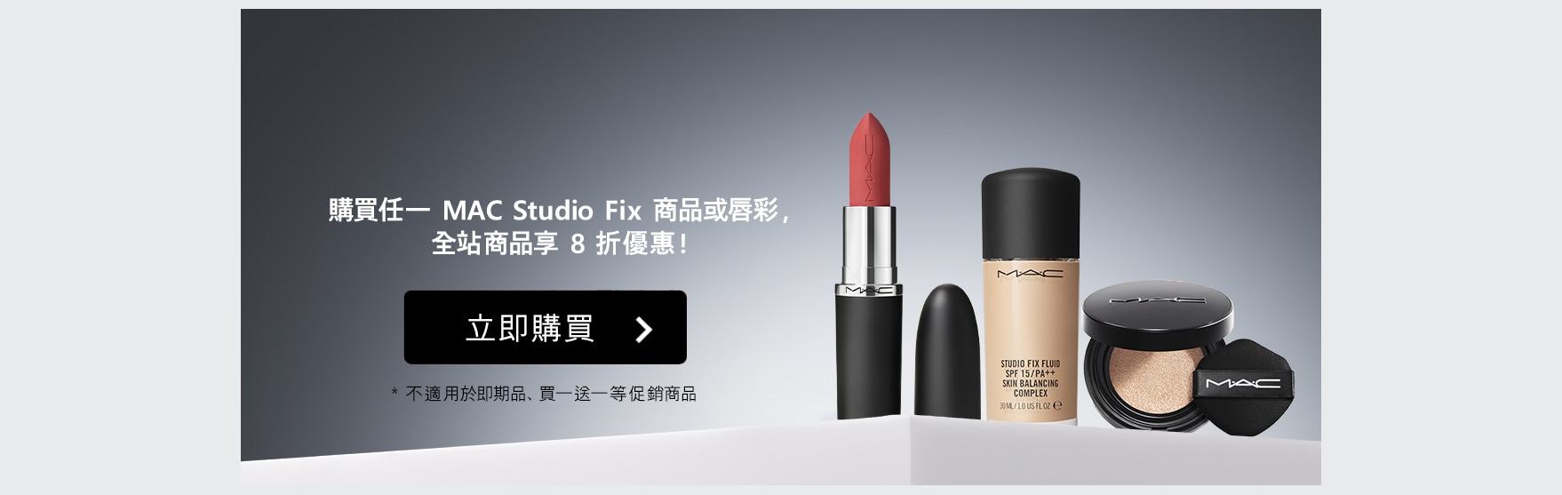 官網獨家限定優惠 15% OFF新會員首次購物尊享全單85折優惠碼:WEL15 Line Points 16%官網限定最高享16%回饋16%回饋為透過LINE購物導購享 10% 回饋+用LINE PAY綁定中信卡再享6% 全站消費皆享免運費 探索熱銷產品 熱銷產品 唇部彩妝 眼部彩妝 保養產品 明星彩妝新品M‧A‧C超熱銷彩妝新上市爆款紫白蜜粉餅X改頭換面噴霧升級X王牌粉底液X經典子彈唇膏成分全面進化 蜜粉餅最強CP 全新進化升級 全新進化升級 全新進化升級 官網服務 免費體驗禮 不限金額於官網消費即可選擇免費體驗禮 立即選購 全站免運費 不限金額消費即可享受免費配送服務 了解更多 綁定官方LINE享優惠綁定M·A·C LINE官方帳號即享下單9折優惠券+專屬下單禮,每個帳戶限享優惠一次 即刻綁定 線上客服 有關訂單、帳號、網站,產品資訊及其他疑問,或是M·A·C 櫃點及任何其他建議都可寄信給客服 立即詢問 *官網贈品數量有限,贈完為止*M·A·C COSMETICS TAIWAN保留活動及贈品變更與修改之權利