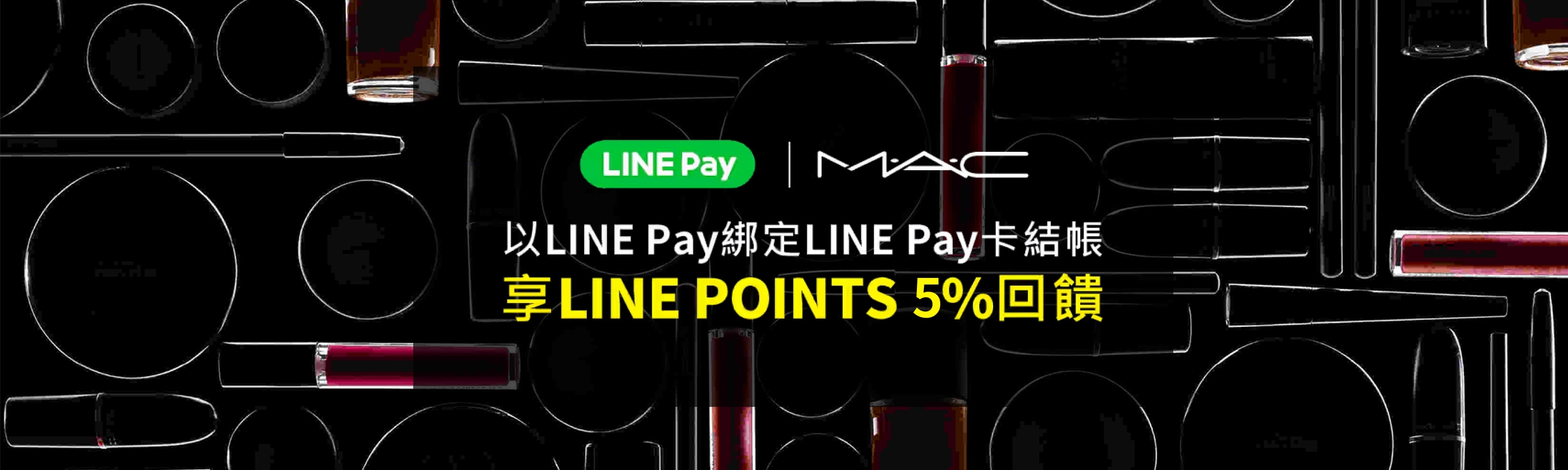 立即搶購暢銷熱賣商品1. 透過LINE Pay我的條碼綁定中國信託LINE Pay聯名卡,至MAC品牌官方網站筆筆享LINE POINTS 5%回饋。2. 實際參加加碼回饋活動之品項,請依各品牌官方網站公告為準。3. LINE POINTS 5%點數回饋=本活動加碼4%點數回饋+原中國信託LINE Pay卡一般消費1%點數回饋。回饋皆以實際LINE Pay綁定卡片支付之新臺幣金額乘以指定回饋%後四捨五入計算。交易已使用LINE POINTS點數折抵的金額,恕不計入LINE POINTS點數回饋活動。4. 活動加碼4%點數回饋:回饋時間為付款成功24小時後陸續發放,原中國信託LINE Pay卡一般消費1%點數回饋:將於商店請款完成(約5至7個工作天)後陸續發放。5. 活動僅限臺灣LINE帳號且已註冊LINE Pay的用戶參加,請務必於結帳前完成註冊LINE Pay。6. 參加活動前請務必確認是否已同意LINE Pay行銷資訊提供政策。提醒您,必須同意行銷資訊提供政策,才可獲得活動回饋(包含但不限於LINE POINTS 點數、貼圖、一卡通帳戶儲值金等LINE Pay行銷活動獎勵)。欲確認是否已同意LINE Pay行銷資訊提供政策,請更新LINE應用程式至最新版本,並進入LINE Pay主頁,依序點選「設定」>「服務條款」>「行銷資訊提供政策」,即可查看是否有勾選同意,有打勾代表已同意。7. 限透過LINE Pay「我的條碼」付款。活動資格係以「LINE Pay」>「交易紀錄」>「付款詳細資訊」內的付款日期及交易完成日期之時間認定。8. 本活動不適用任何分期付款(含後續單筆分期、帳單分期),亦不得滯納繳款,方得享有優惠。9. 本優惠回饋之LINE POINTS點數不得兌換現金、不可轉讓或出售,並且在法律禁止的地區無效。嚴禁以不當方式使用本優惠,如有違反,中國信託銀行及LINE有權取消持卡人LINE POINTS點數回饋活動之資格並要求返還已回饋之LINE POINTS點數,如點數不足扣回,將以1點1元的方式向持卡人帳單收取。10. 詳細加碼活動辦法請參閱中國信託銀行官網公布之『中國信託LINE Pay卡 2019年行銷加碼回饋』及『中國信託LINE Pay卡回饋計畫』。11. 如遇不可抗力或不可歸責之事由,中國信託銀行及MAC得保留修改、變更或終止本活動。